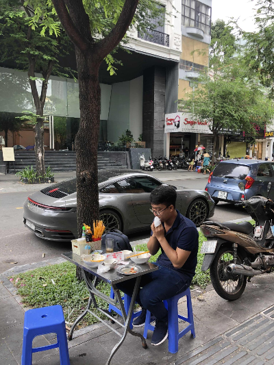 마치 내가 타고 온 듯 포르쉐911 옆에서 먹었다.(무지부럽)